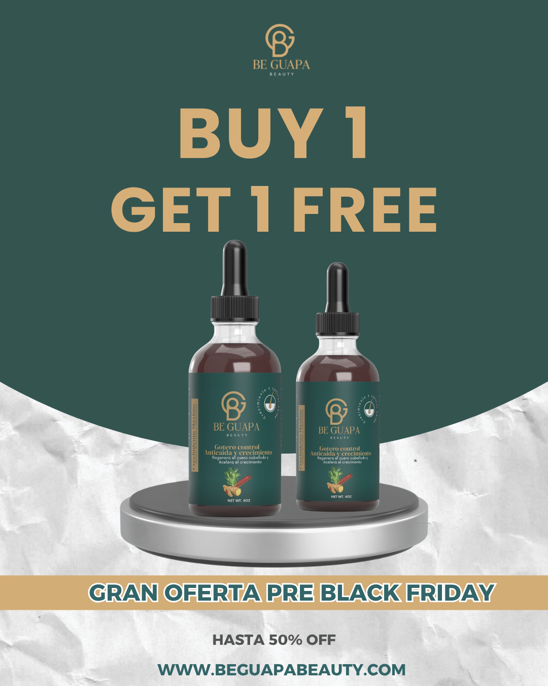 Durante nuestro Pre Black Friday, al comprar 1 gotero capilar de Be Guapa Beauty, te llevas otro completamente GRATIS.